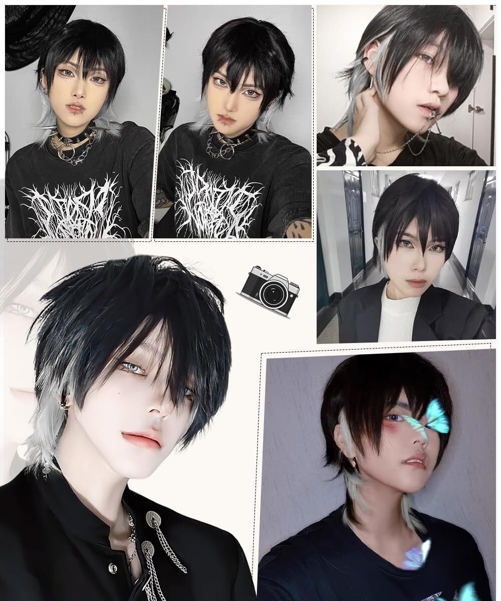 ウィッグ メンズ ウルフ インナーカラー グレー 黒髪 男装 ショート ボブ かつら 男性 フルウィッグ 自然 ファッション コスプレ クラッセウィッグ
