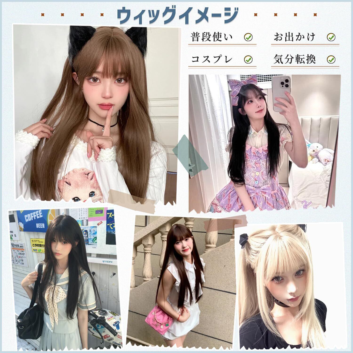 ORSUNCER ウィッグ ロング 茶髪 ブラウン ストレート 長 ウイッグ フルウィッグ wigレディース かつら 女性 茶色 ぱっつん 普段使い 自然 小顔 耐熱 前髪 ミルクティー amazon | グランメゾンショップ