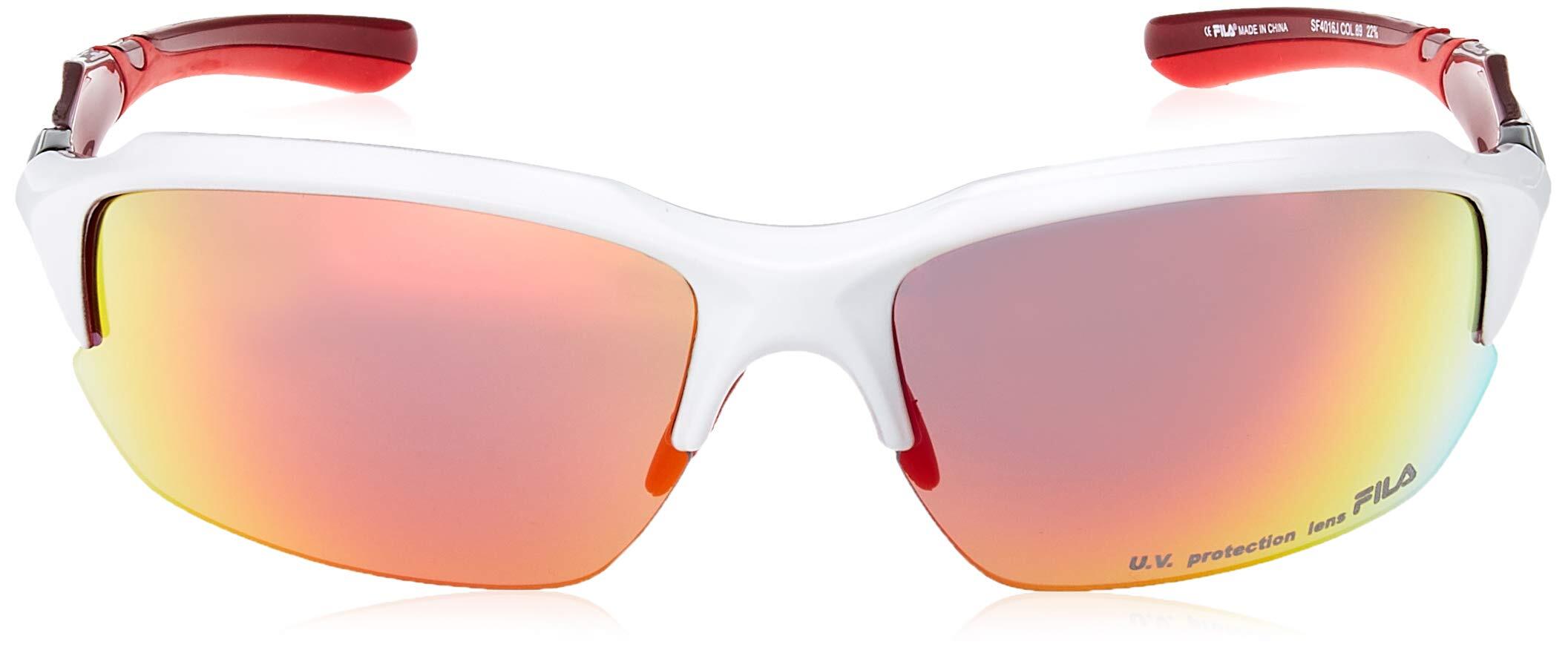 スポーツウェアブランド『FILA』のスポーツサングラスです。目にやさしい紫外線カット機能付き。日本人の鼻の高さにあうノーズパットになっています