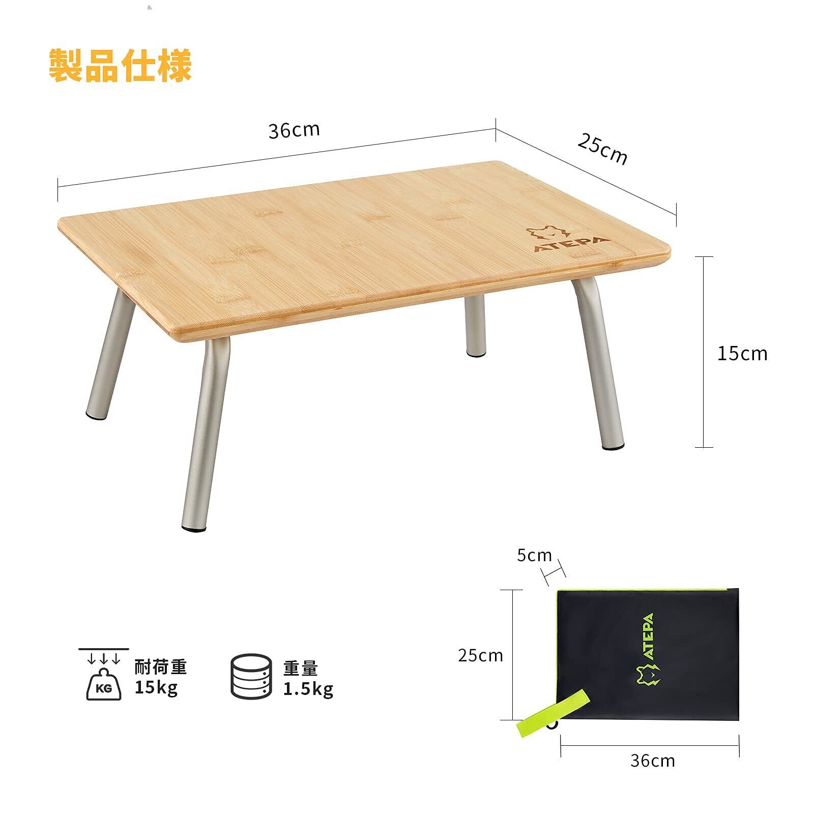 ATEPA 折りたたみテーブル ミニ 竹製 コンパクト 小さめ アウトドア テーブル ソロキャンプ ローテーブル 耐荷重15kg 収納 ピクニック ベッドテーブル ハンドル付き レジャー用