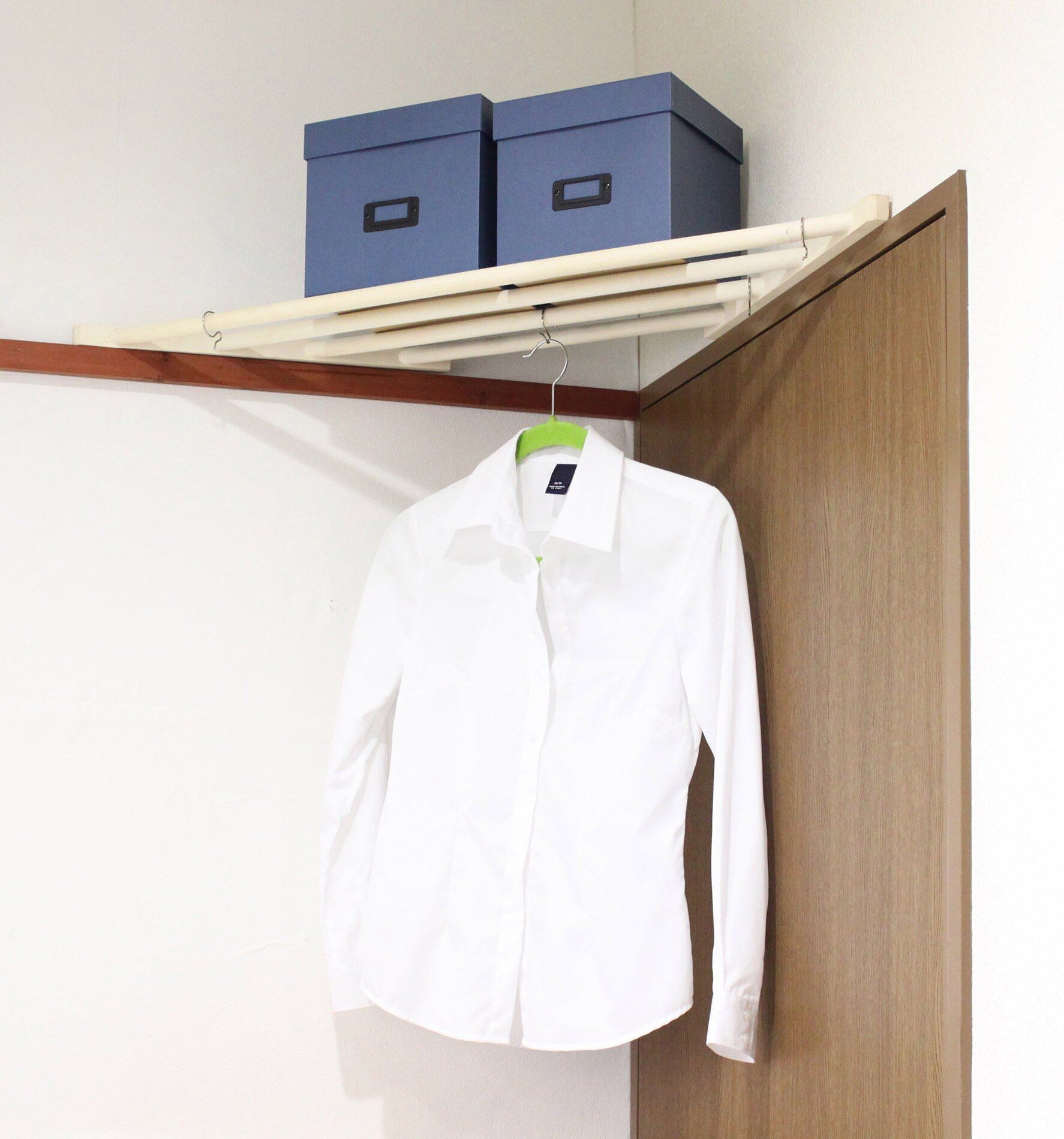 〇上に収納ボックスを置いたり、ハンガーを掛けることもできます。