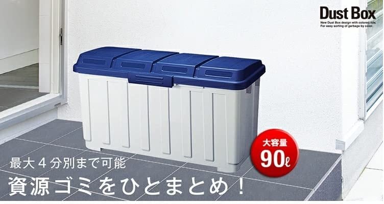 アスベル フタ付きゴミ箱 4分別ダストボックス 分別用仕切付き 90L 青 大容量 A6652