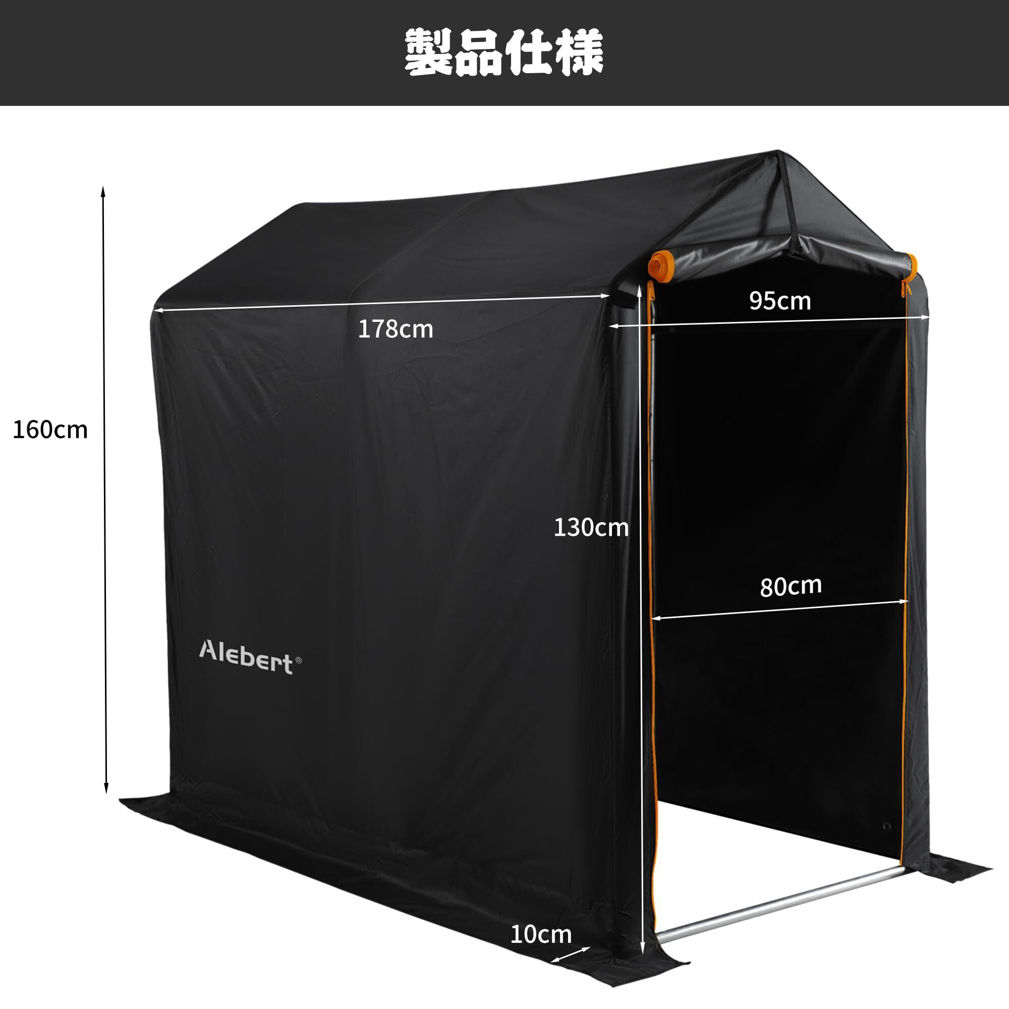 Alebert サイクルハウス 自転車テント 幅95㎝ 最大3台収納 バイクガレージ サイクルガレージ サイクルポート 自転車置き場 屋外 自転車収納 ガレージテント バイクシェルター 自転車屋根 自転車倉庫 高耐久鋼フレーム UV加工シート・遮熱・撥水加工 雨よけ 家庭・アウトドア・戸外用 (ブラック, Sサイズ)