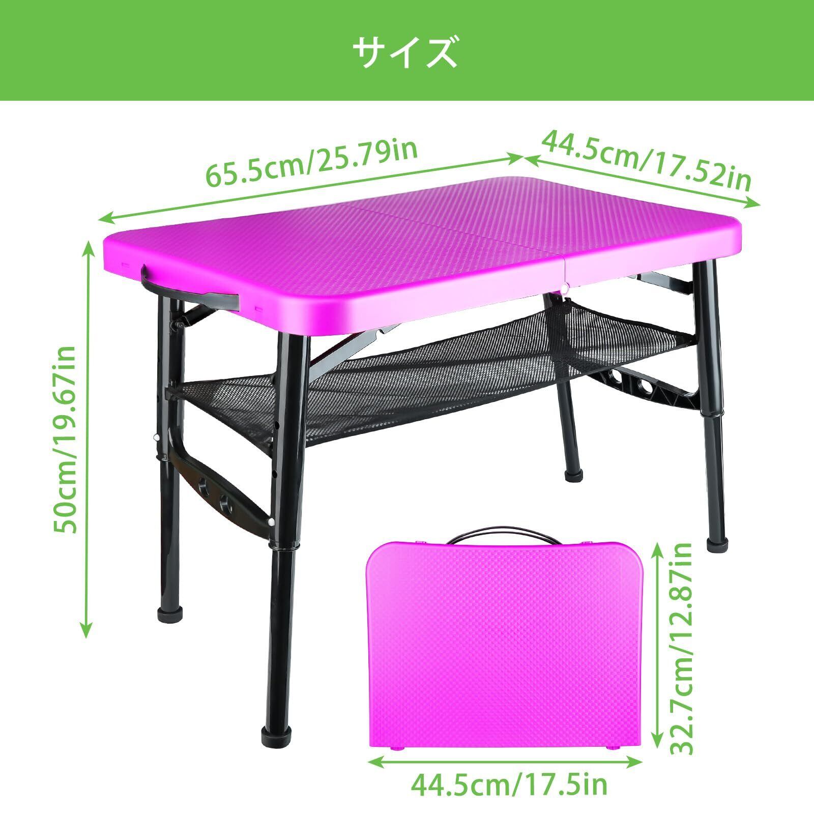 ZTMTアウトドア折りたたみテーブル キャンプテーブル 高さ4段階調節可能 耐荷重25kg 屋外折りたたみピクニックテーブル-ポータブルコンパクトと折り畳み式 収納しやすい ハンドルを持ち歩く-オフィス、ピクニック、ガーデン、ガーデン、ダイニング、バーベキュー、パーティー、レジャーキャンプ-取り外し可能な収納ネット付き(ピンク) | グランメゾンショップ