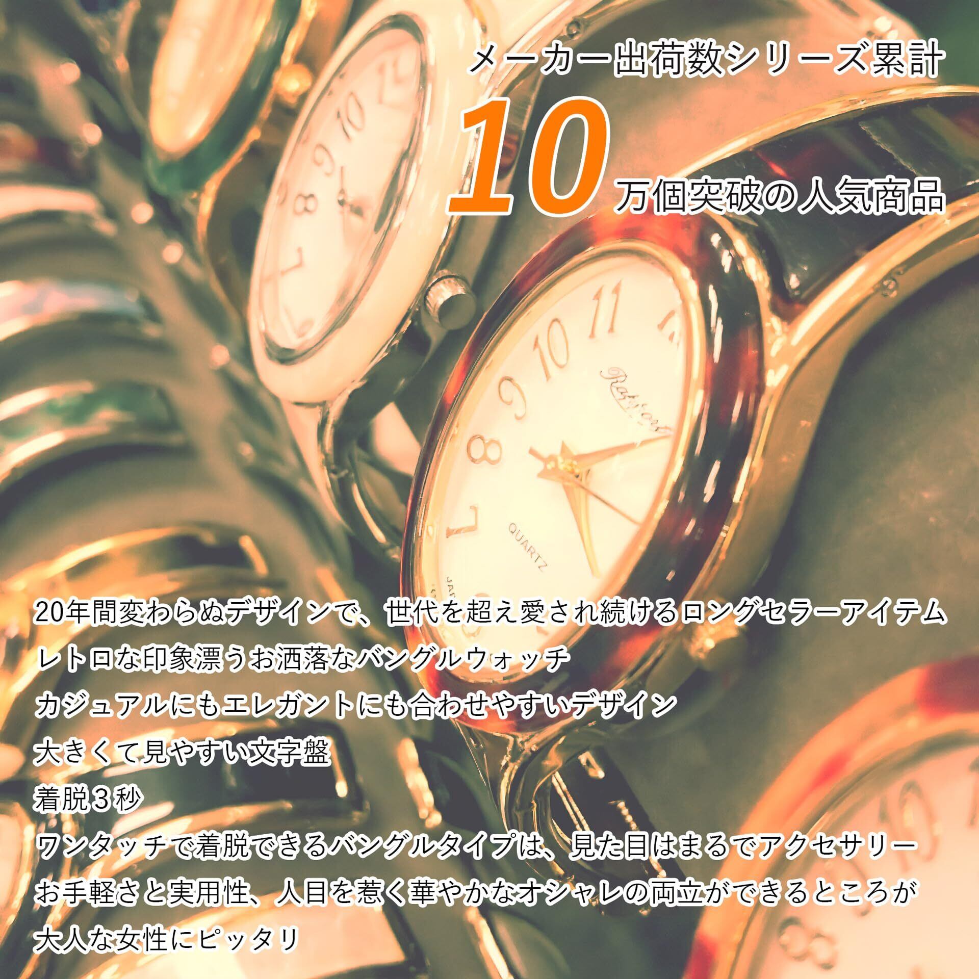 RAPPORT(ラポール) 腕時計 オーバルバングルウォッチ ゴールドワイド 188728 レディース ブラック