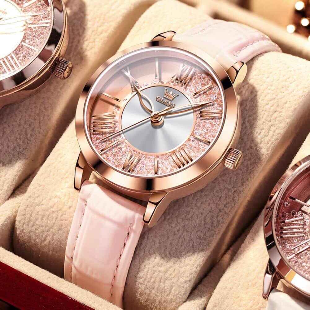OLEVS 腕時計 レディース 人気 クオーツ うで時計レディース キラキラ文字盤 ダイヤモンド 流砂 防水 夜光 プレゼント 母の日 watch for womenピンク