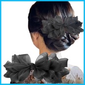 GFun 髪飾り リボン 黒 大きめ 和装 袴 バレッタ クリップ ヘアアクセサリー 卒園式 発表会 浴衣 洋服