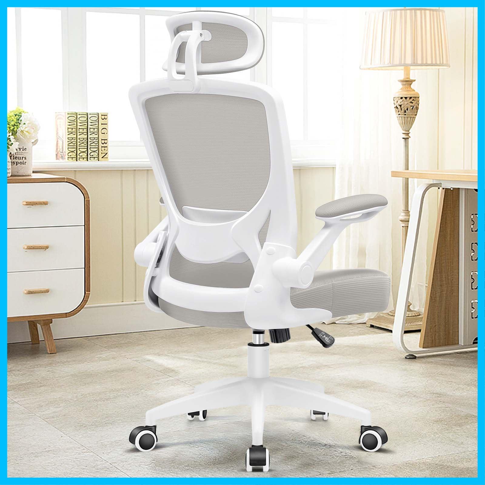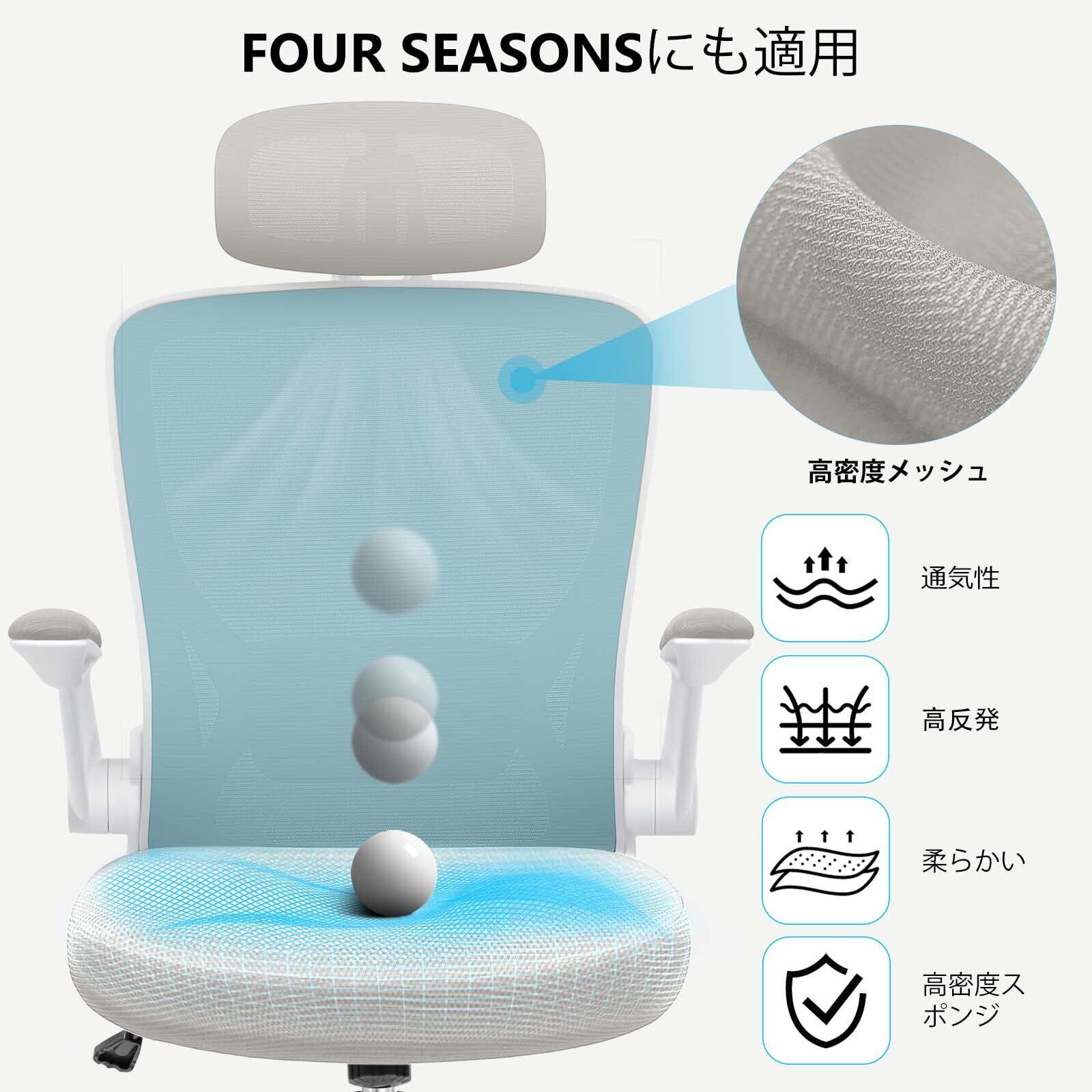 KERDOM パソコンチェア オフィスチェア 椅子 テレワーク メッシュ人間工学椅子 デスクチェア 疲れない 勉強 学習 ランバーサポート付き 360度回転 腰に良い 人気 おしゃれ(KD9060H-Light Gray-New)