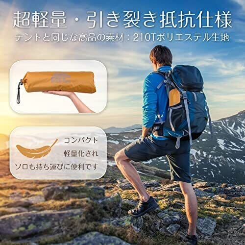 【超軽量・引き裂き抵抗生地】テントと同じな高品の素材、210Tポリエステル生地が採用され、超軽量で耐久性が’抜群です。アウトドアの変わりやすい自然環境に対応でき、裂けにくく、枝やとがった石などで傷がつきにくく、風が吹いても破損しにくいです。