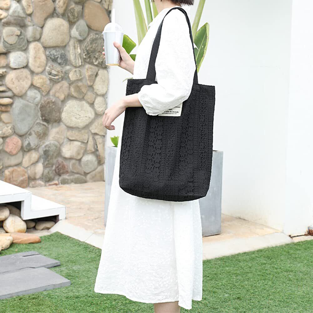 [Sueeya] (スイーヤ) トート バッグ レディース レース キャンバス ショルダー 2way 肩掛け 可愛い シンプル 軽量 おしゃれ シート 裏地付き 収納可能 ポケット ファッション 通勤 通学