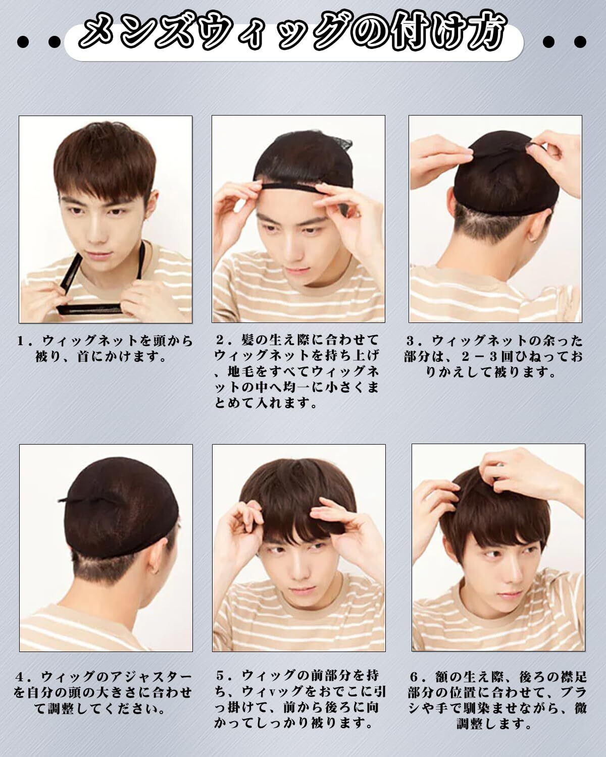 【ウィッグメンズ特徴】:さっと装着するだけで、髪の長さ・カラー・ボリュームを簡単にイメージチェンジできるメンズウィッグ。自然でバレない、ナチュラルな見た目ので、コスプレ・変装・イベント使用だけでなく、普段使いやすいです。つけ心地が良い、ウィッグ初心者でも簡単に着用できるショートフルウィッグ。