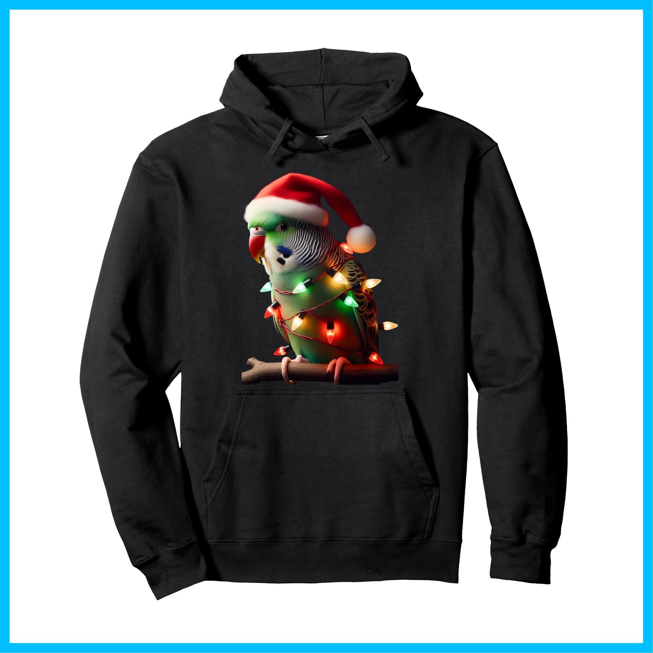 サンタ帽子とクリスマスライト付きインコ ペットオーナーの恋人 パーカー