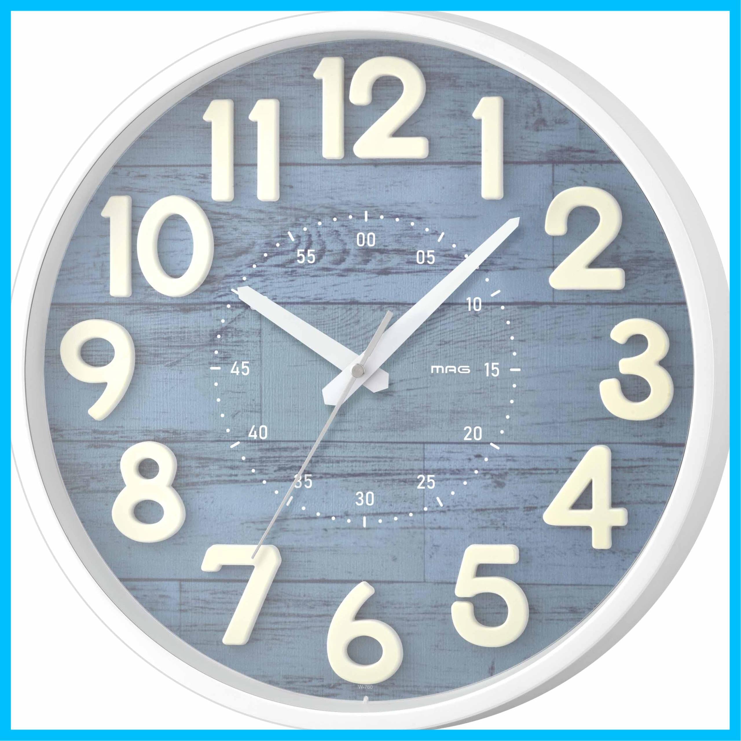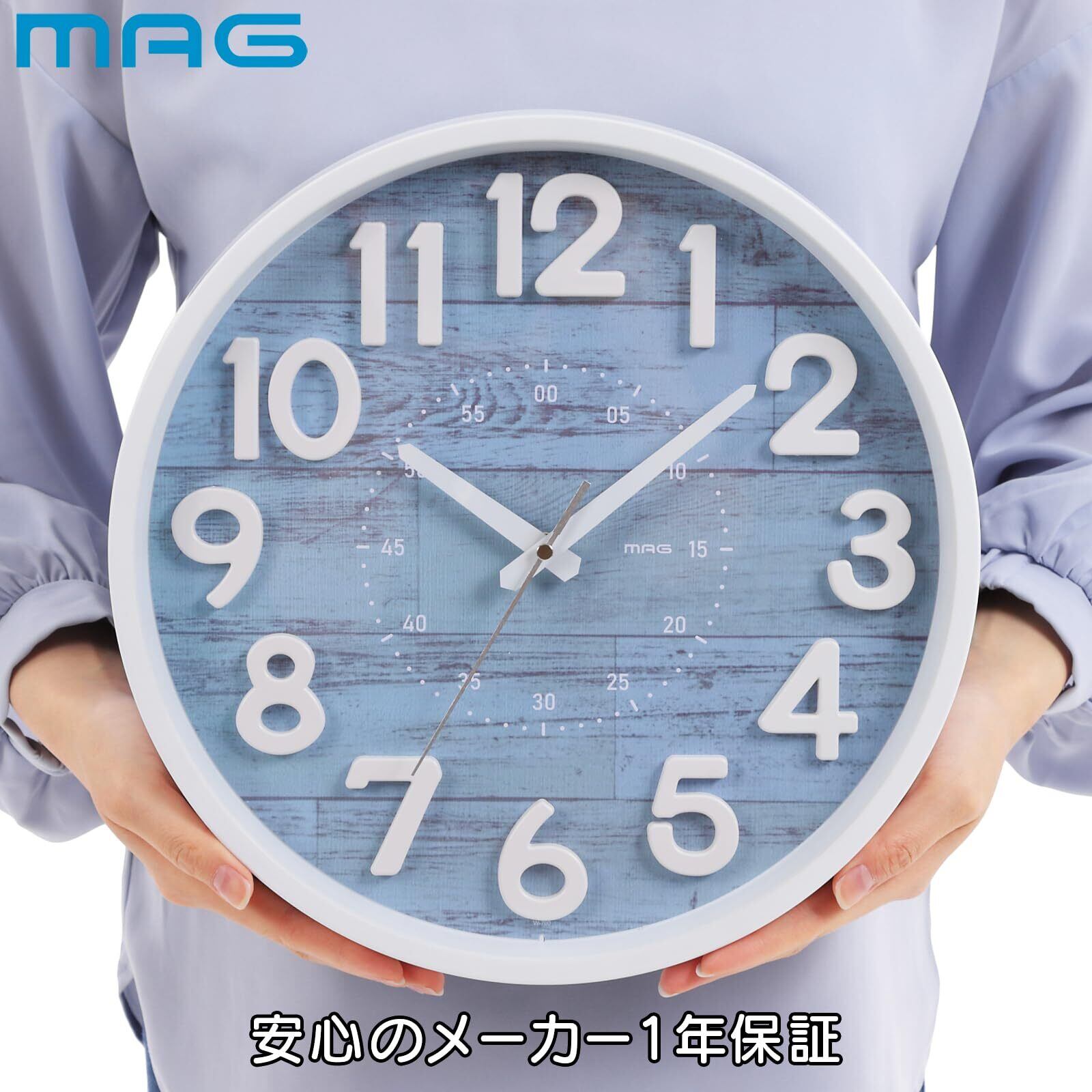 MAG(マグ) 掛け時計 壁掛け時計 直径30.0㎝ アナログ クレープ 静音 連続秒針 立体文字 ブルー W-760BU-Z