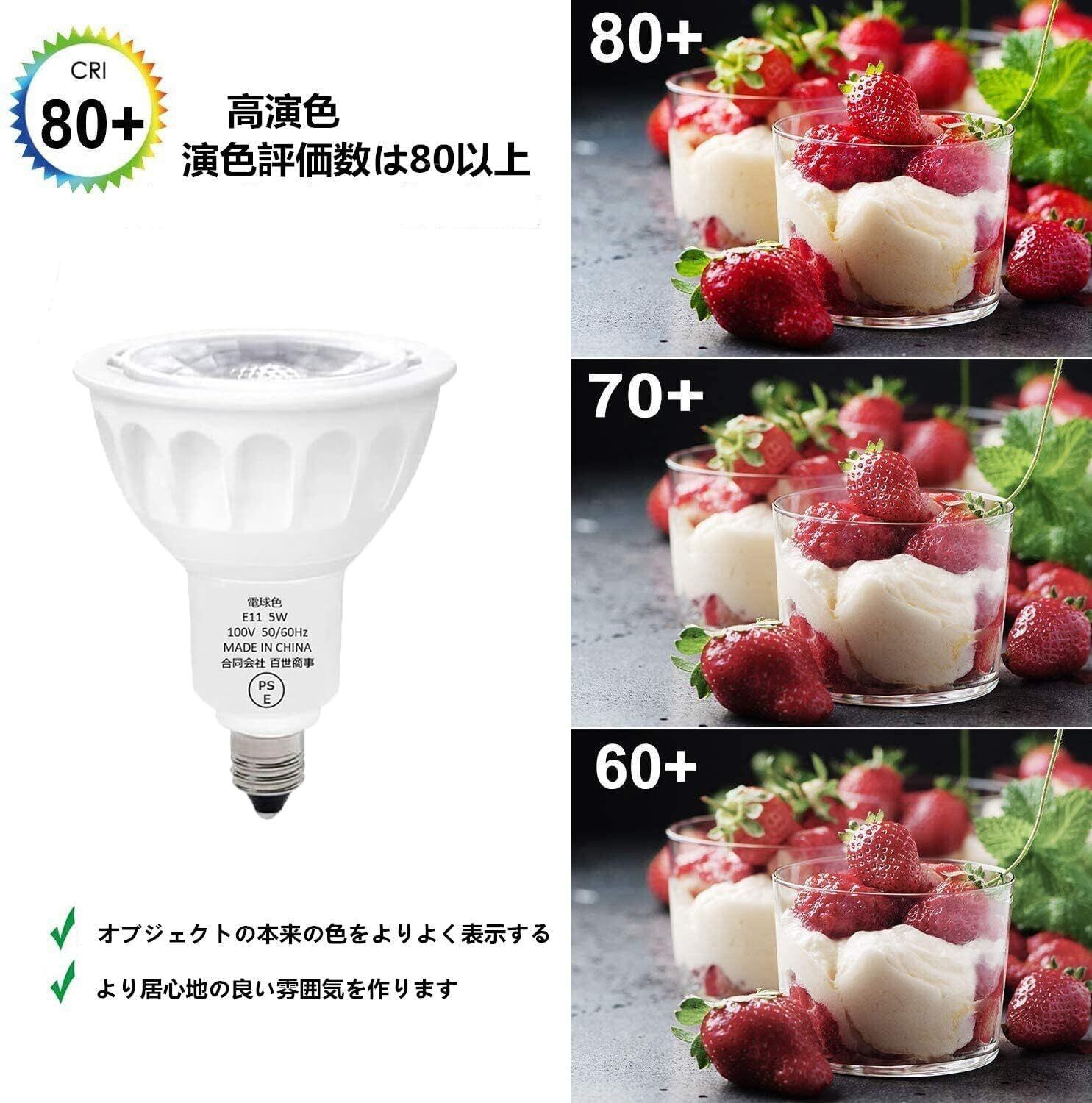 E11 LED 電球 スポットライト 調光器対応 電球色 3000K 4個セット E11口金 5W 6W 50W型相当 500LM E11 LED電球 高輝度 高演色 長寿命 省エネ AC100V JDRΦ50 ビーム角40°