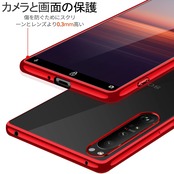 Xperia 1 III ケース クリア SO-51B スマホケース SOG03 XQ-BC72 ソフト tpu 透明 背面クリア 赤 メッキ加工 エスクペリア 1III ストラップホール付き 超軽量 耐衝撃 カバー レッド
