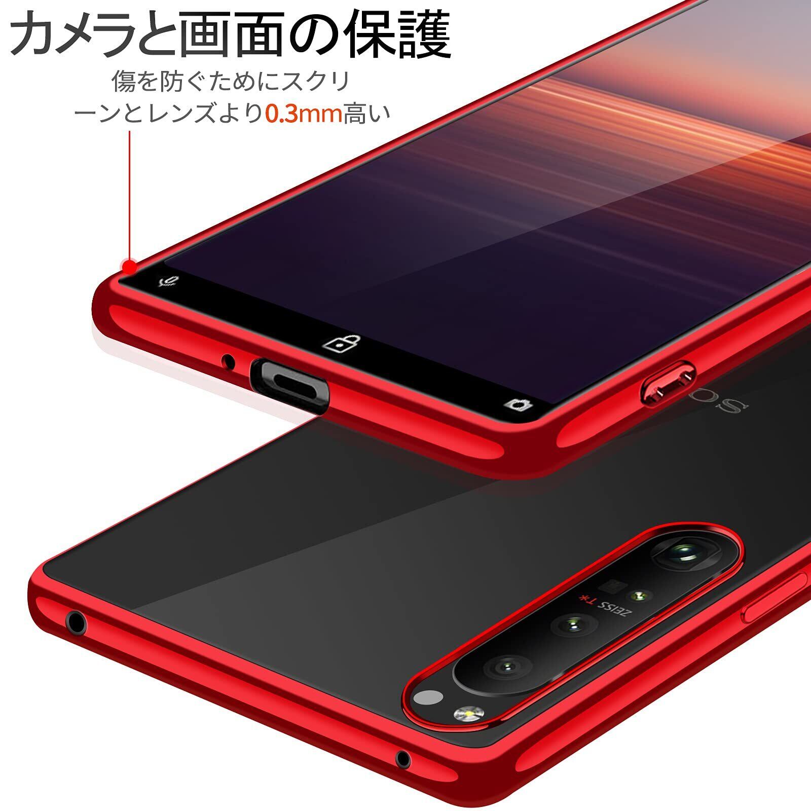 Xperia 1 III ケース クリア SO-51B スマホケース SOG03 XQ-BC72 ソフト tpu 透明 背面クリア 赤 メッキ加工 エスクペリア 1III ストラップホール付き 超軽量 耐衝撃 カバー レッド | グランメゾンショップ