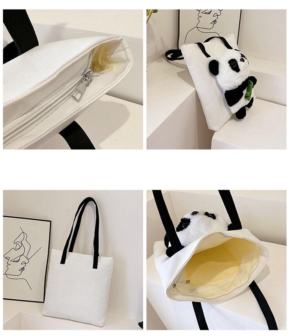 [JIANGWEI] トートバッグ ショルダーバッグ レデース バッグ 肩掛け 手提げ パンダ ぬいぐるみ 可愛い 帆布バッグ 内ポケット 通勤 通学 キャンパストート バッグ ショルダー 動物 カジュアル