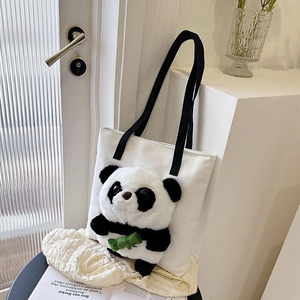 [JIANGWEI] トートバッグ ショルダーバッグ レデース バッグ 肩掛け 手提げ パンダ ぬいぐるみ 可愛い 帆布バッグ 内ポケット 通勤 通学 キャンパストート バッグ ショルダー 動物 カジュアル | グランメゾンショップ