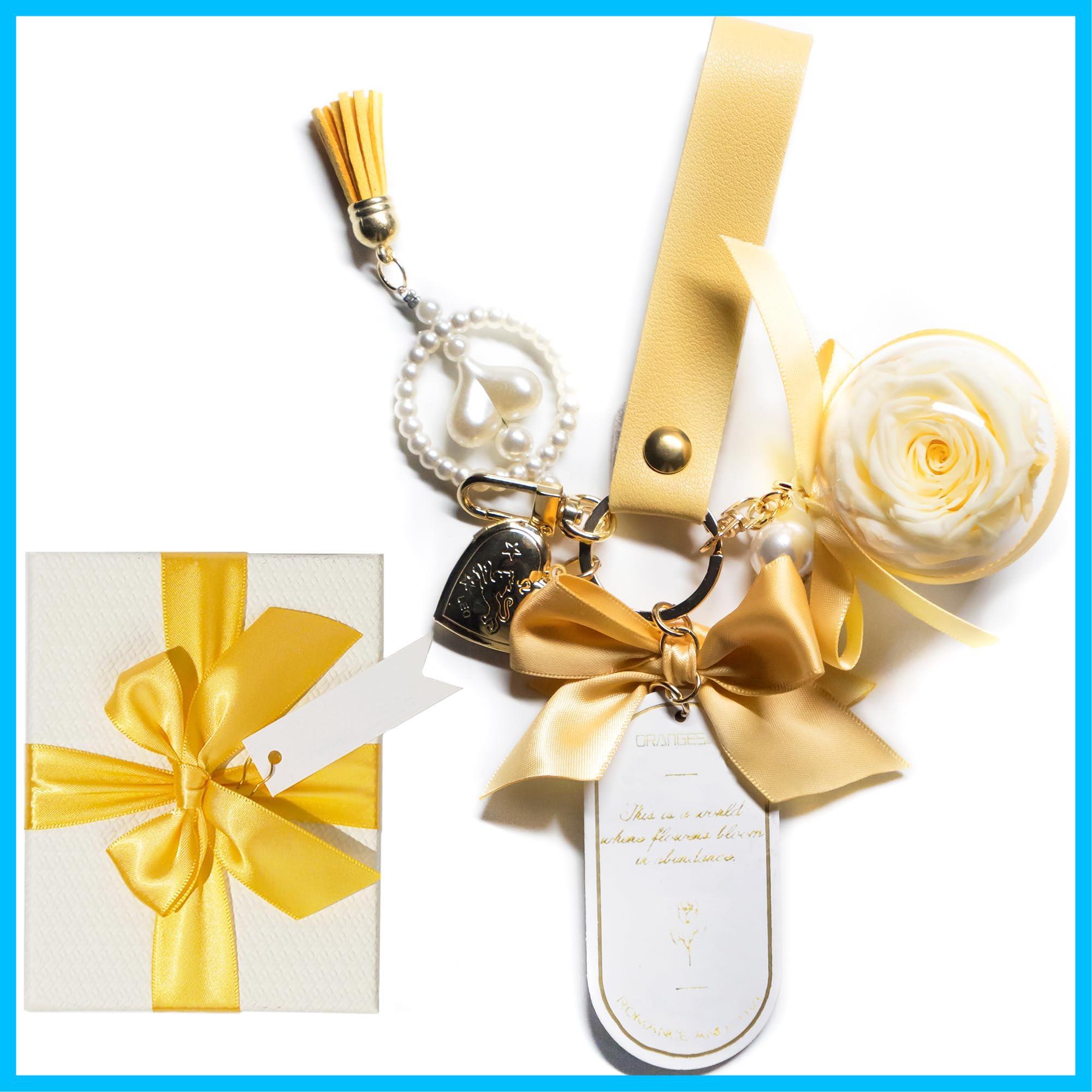 [ORANGESCE] プリザーブドフラワー キーホルダー 枯れない花 女性 女友達 彼女 母 贈り物 バレンタイン 記念日 誕生日 人気 結婚祝い 引越し祝い 母の日 プレゼント クリスマス 入学 卒業 ギフト (イエロー) | グランメゾンショップ