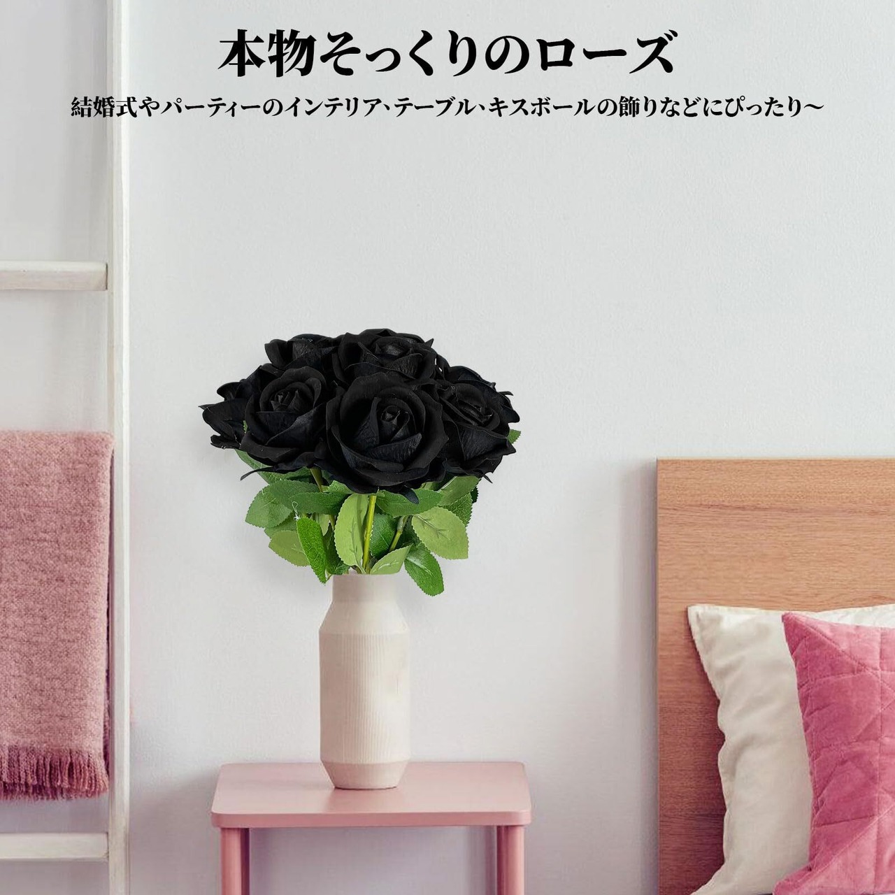 【素材構成】:花びらは肌に優しくスエードのような材質で覆われ、葉は上品な布でできています。茎はプラスチックに包まれた金属線で作られ、リアルなプラスチックのとげがあります。必要に応じて曲げたり、切ったり、引き出したりできます。
