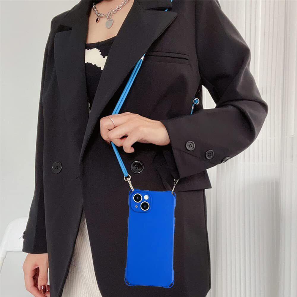 Turkalla for iPhone 14 ケース【革新版四隅に穴開き 縦・横掛け】クロスボディ・ストラップケース ショルダー ストラップ 首・肩・腕掛け 3WAY 調節可能なショルダー iPhone14 スマホケース アイフォン14 カバー 液体シリコン素材 落下防止 耐衝撃 薄型軽量 ショルダー ケース 韓国(ブルー/iPhone14)