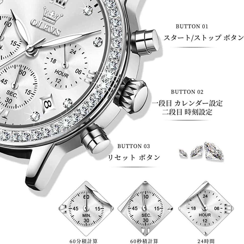 多機能 うで時計 レディース:クロノグラフ機能は料理や勉強など時間を管理したいときに最適。ケースはクリスタルが付けられるし、通気性革バンドはカジュアルで華やかな外見をお届けします。