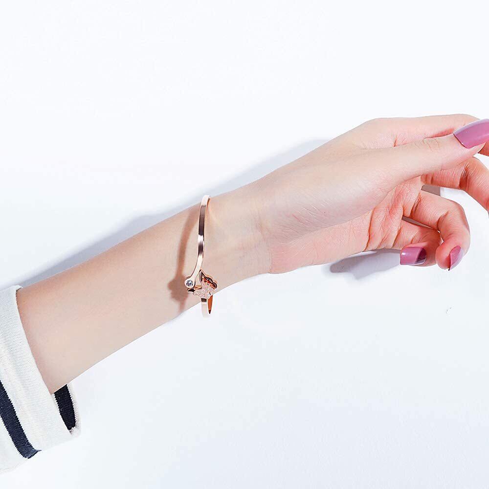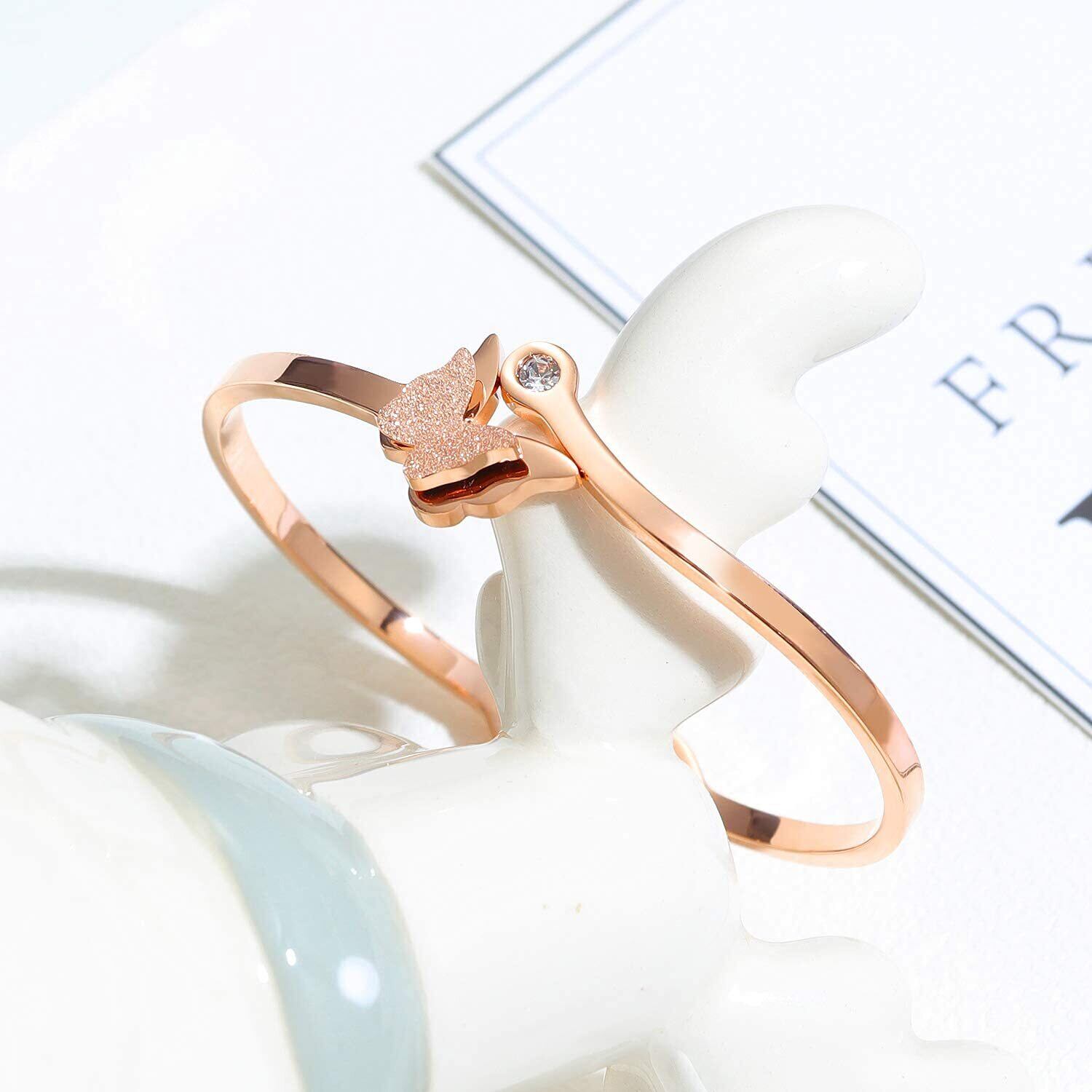 【Rockyu】バングル レディース ピンクゴールド 蝶々ブレスレット 一粒【素材】チタン ジルコニア【サイズ】幅;3mm 蝶々幅:14mm チェーンサイズ:175mm 内径:60mm【重量】12g