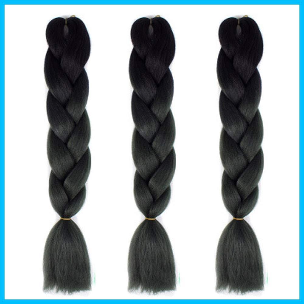 Feibin 30色 ウィッグ エクステンション 3本セット ブレイズ 編み込み グラデーション 三つ編み ヘアアクセサリー 盛りアップ つけウィッグ かつら 毛束 ウィッグ つけ毛 ヘアアクササリー ヒップ ホップ レゲエ ダンス ヘアアレンジ (11#ブラック+ダークグリーン) | グランメゾンショップ