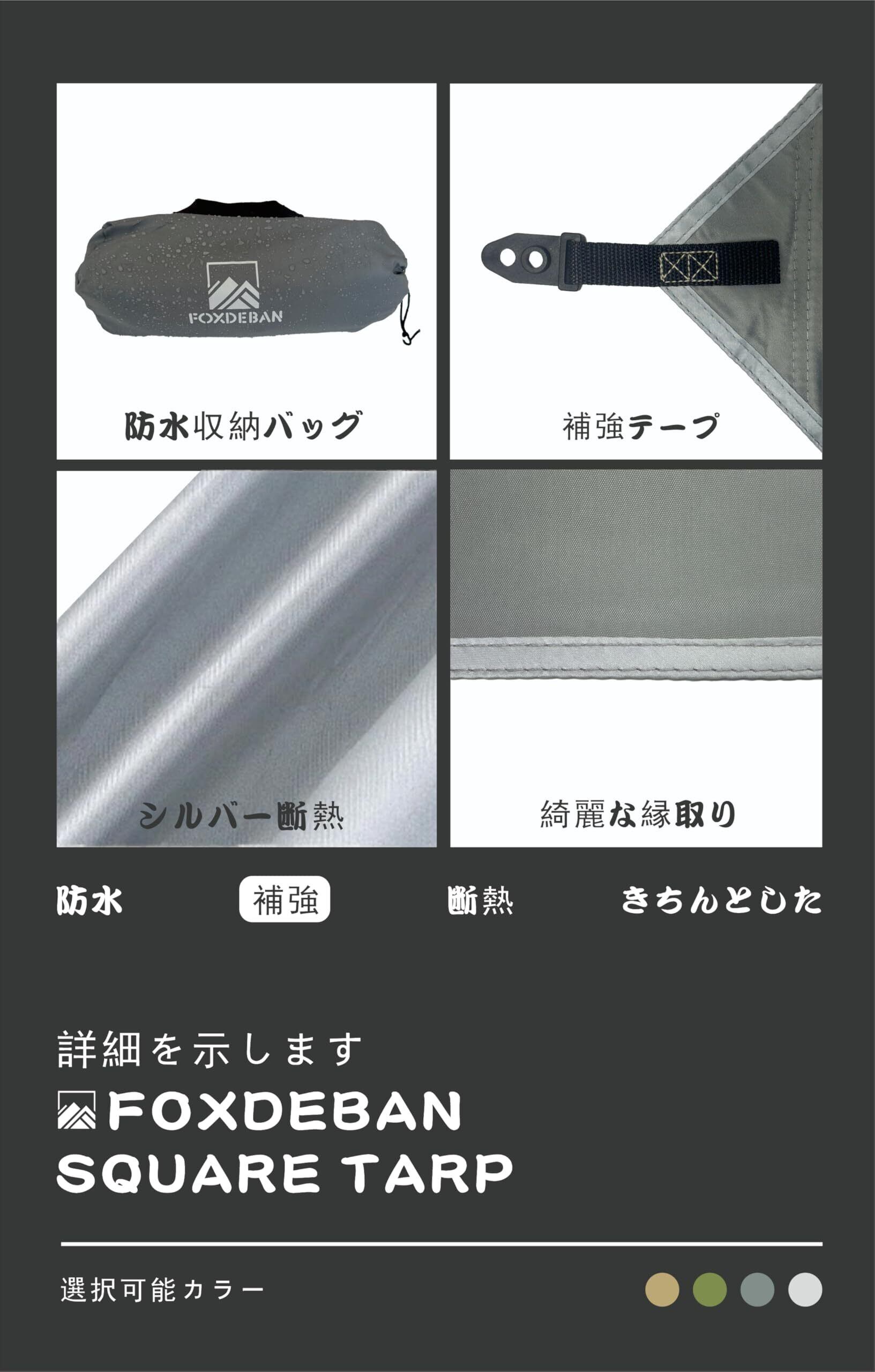 Foxdeban 防水キャンプタープ たーぷテント レクタタープ 天幕 サンシェルター 軽量コンパク 日除け 雨よけ 防風 断熱材 遮光 紫外線uvカット 高耐水圧3000 300D高密度生地 防水収納ケース付 UVカット アウトドア ピクニック バーベキュー 4人用 (グリーン, 300×300CM) | グランメゾンショップ
