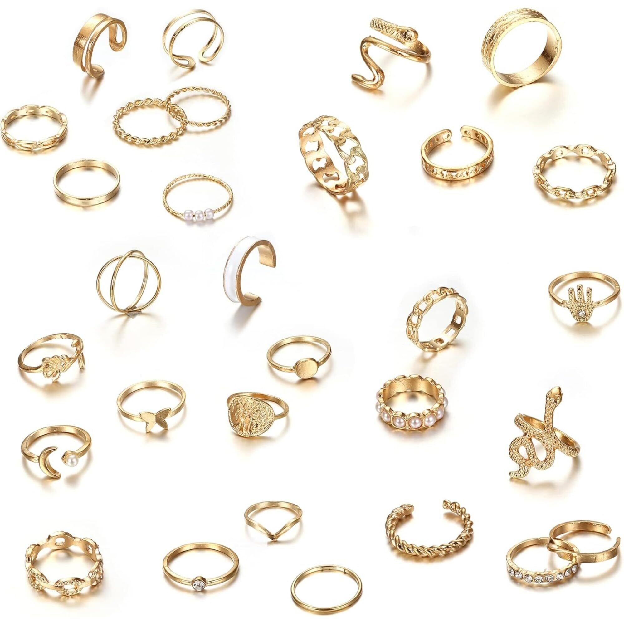 [JeryWe] 30点 セット 指輪 レディース リング シンプル ヘビ 蝶 フラワー リング おしゃれ 人気 調整可能 フリーサイズ リング 女性 ゴールド 指輪 リング ジュエリー (ゴールド) | グランメゾンショップ