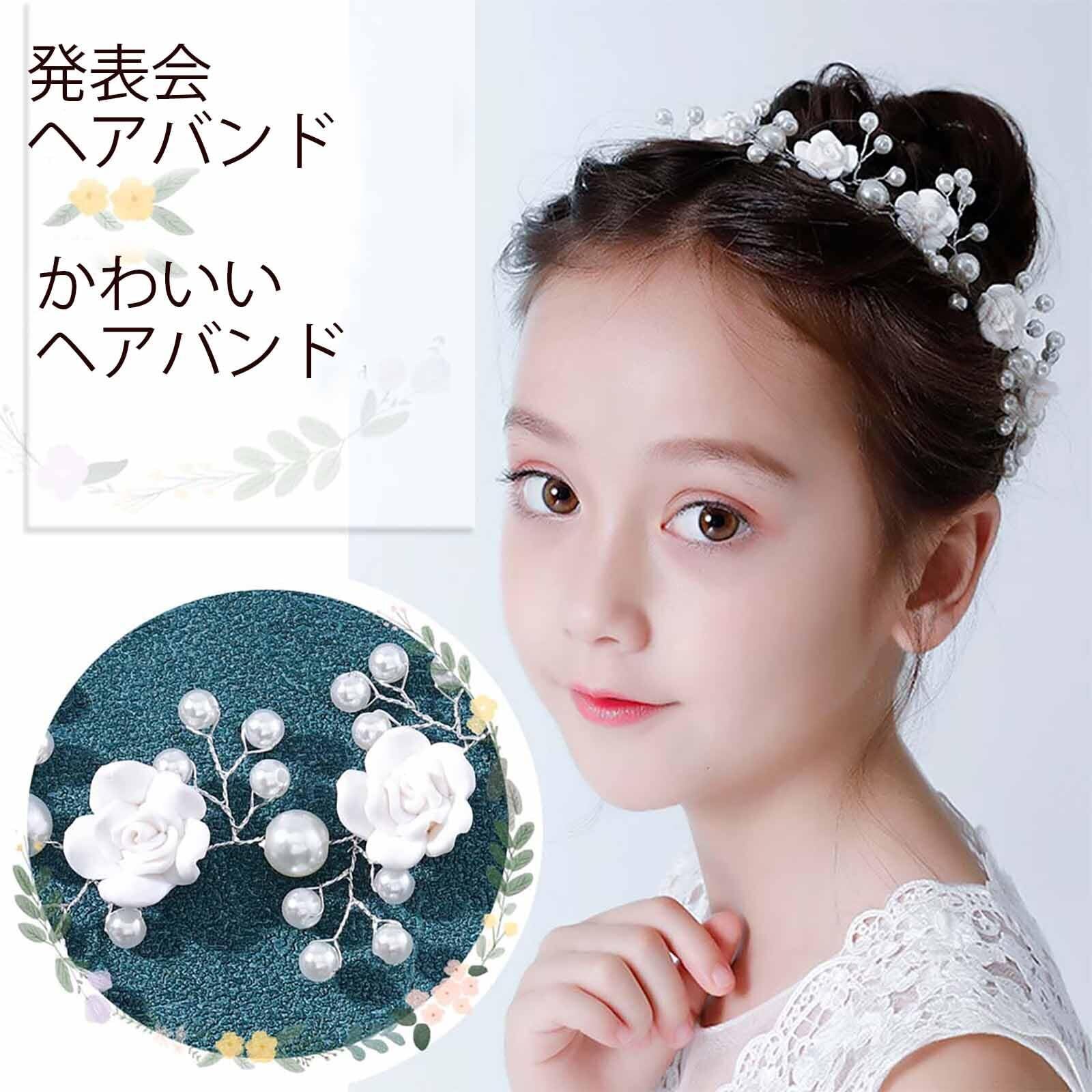 結婚式 フラワー カチューシャ ホワイト パール ヘアバンド ウェディング ヘアアクセサリー 結婚式 誕生日 パーティー 発表会 女の子, Medium