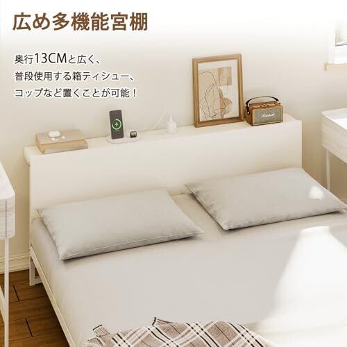 SINNONAKA 2口コンセント宮棚付き ローベッド ベッドフレーム セミダブル ロボット掃除機OK 静音パイプベッド スチール 連結 フレームのみ(ホワイトウォッシュ×ホワイト) | グランメゾンショップ