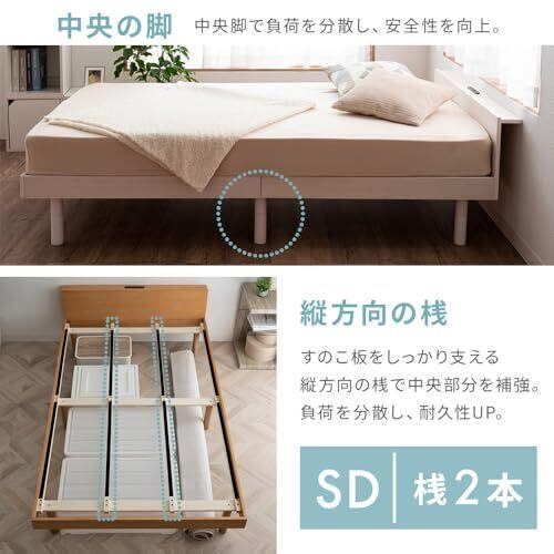 アイリスプラザ ベッドフレーム 2口コンセント・USBポート付き 棚付き 3段階 高さ調整 すのこベッド セミダブル ホワイト
