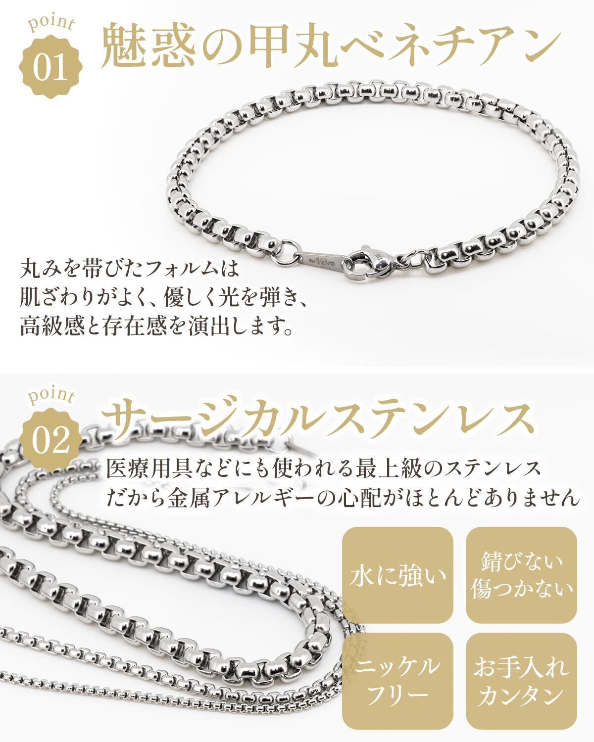 【 人気のベネチアンチェーンアンクレット 】甲丸ボックス型のピースを交互に組合せたチェーンで別名ボックスチェーンとも呼ばれます。直線的なシルエットと密度のある構造は高級感と柔軟性を併せ持ちます。ベネチアンチェーンは強度が強く、絡まりません。男性、女性、年齢、シーンに関わらず、カジュアルにも身に付けていただけます。流行に左右されない輝きが魅力のメンズアンクレット・レディースアンクレットです。