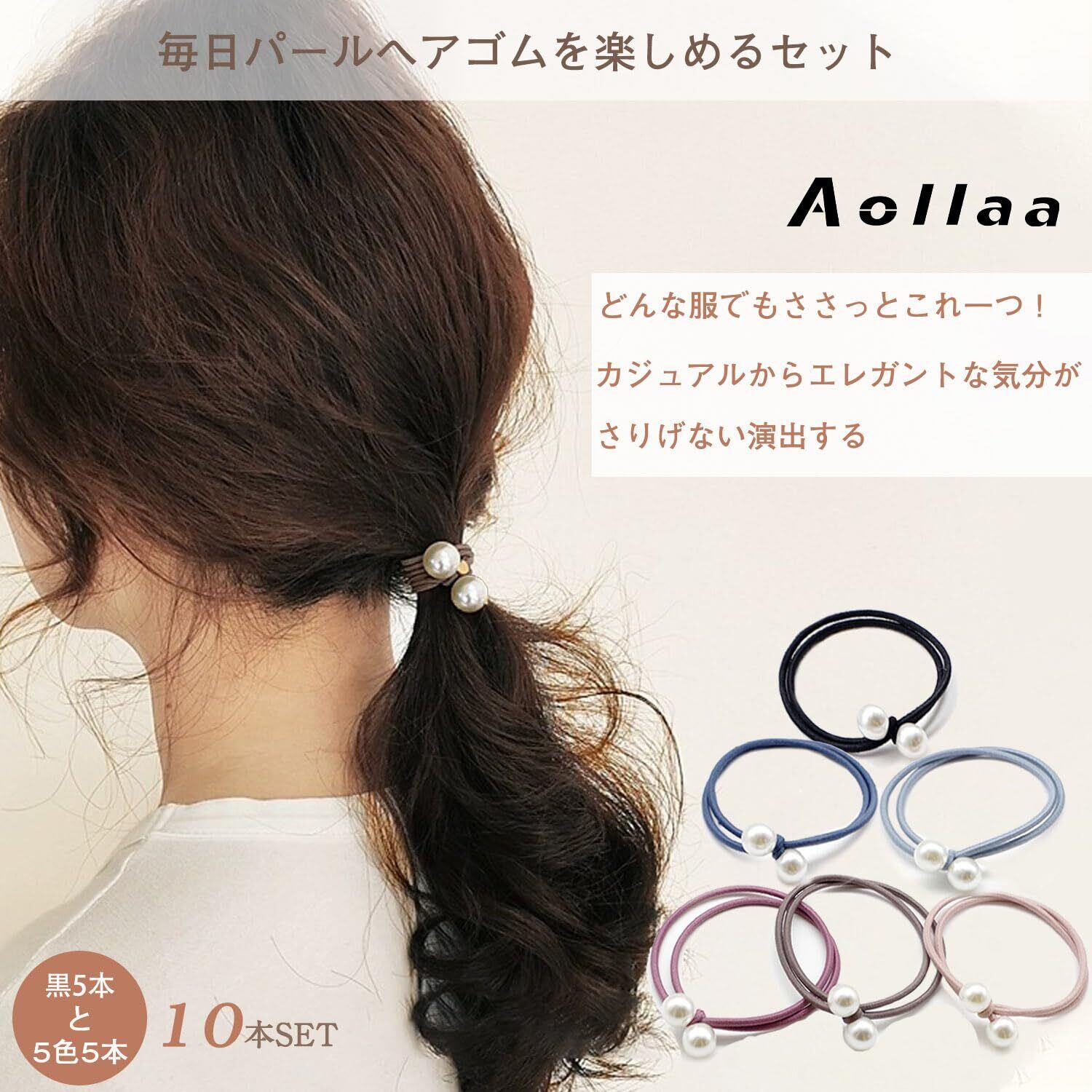[アオラー]Aollaaヘアゴム 髪ゴム【2粒パールと2重ゴム10本入】高弾性 人気韓国風 おしゃれ大人ヘアアクセサリー くすみカラー 髪馴染み良い ヘアリングゴム 髪留め レディース ヘアアレンジ ホワイトデー プレゼント(ブラウン糸10点) | グランメゾンショップ