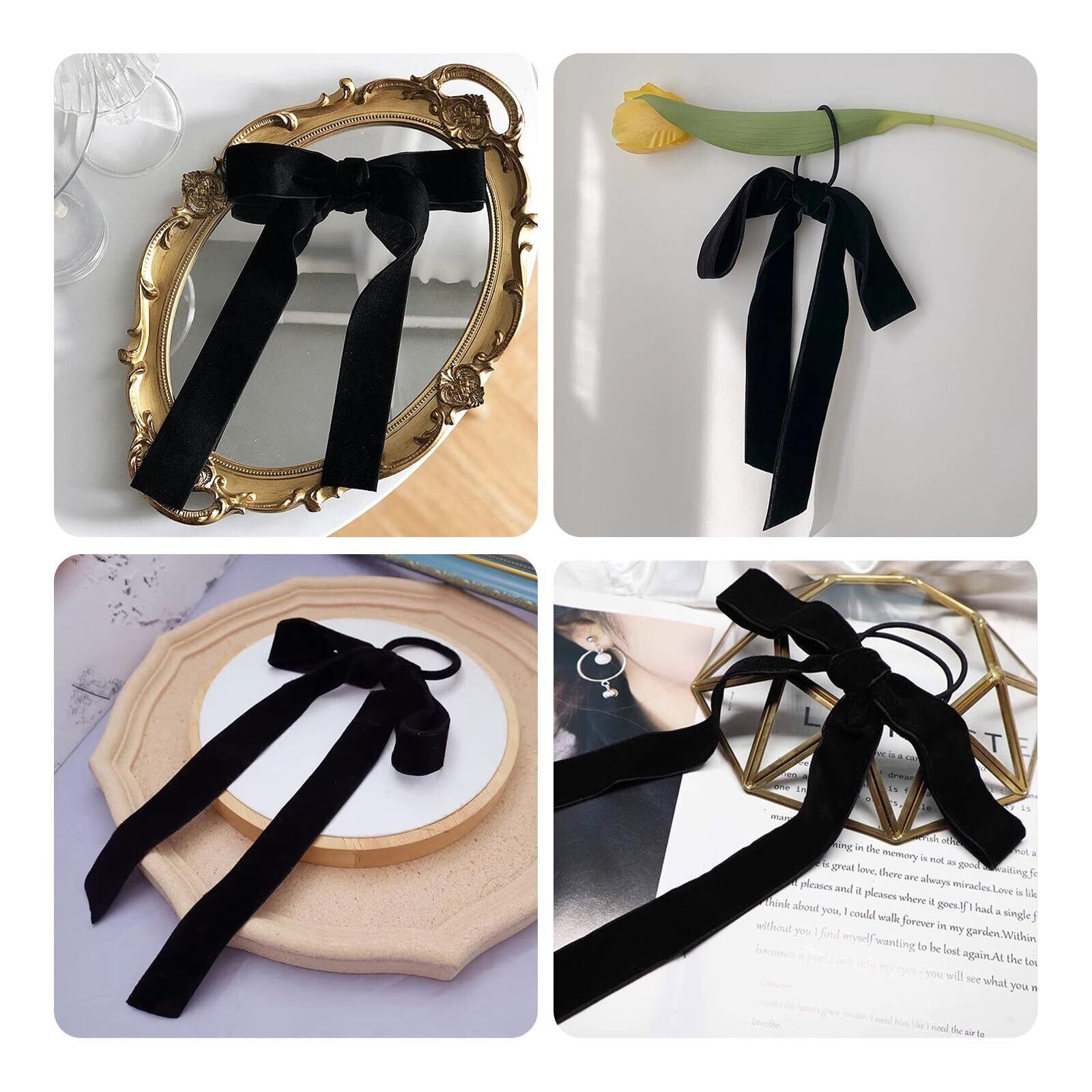 【使いやすさ】このベロアリボンは、髪に結ぶだけで、ワンステップで着用できるようにデザインしました。 各ピッグテールの弓は完全に柔らかいベルベットで覆われている、あなたの髪へのダメージはありません、高品質の髪のネクタイは、簡単にあなたが望む髪型、ポニーテール、ツイスト、ロングヘアや巻き毛を作成することができ、私たちの黒い弓の髪のネクタイは、あなたの帽子、バッグや服に合わせることは非常に簡単です。