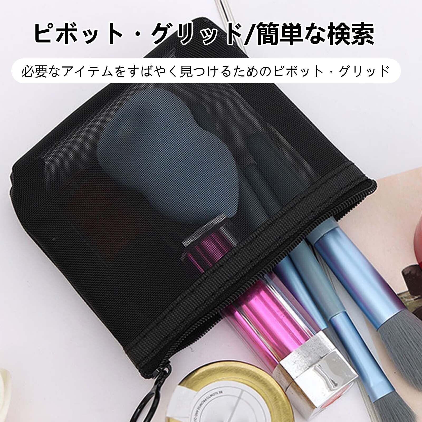 メッシュ化粧ポーチ 3枚入り 小さめ メイクポーチ 旅行 半透明 コスメポーチ 持ち運び 多機能収納バッグ 各種小物の収納(ブラック)