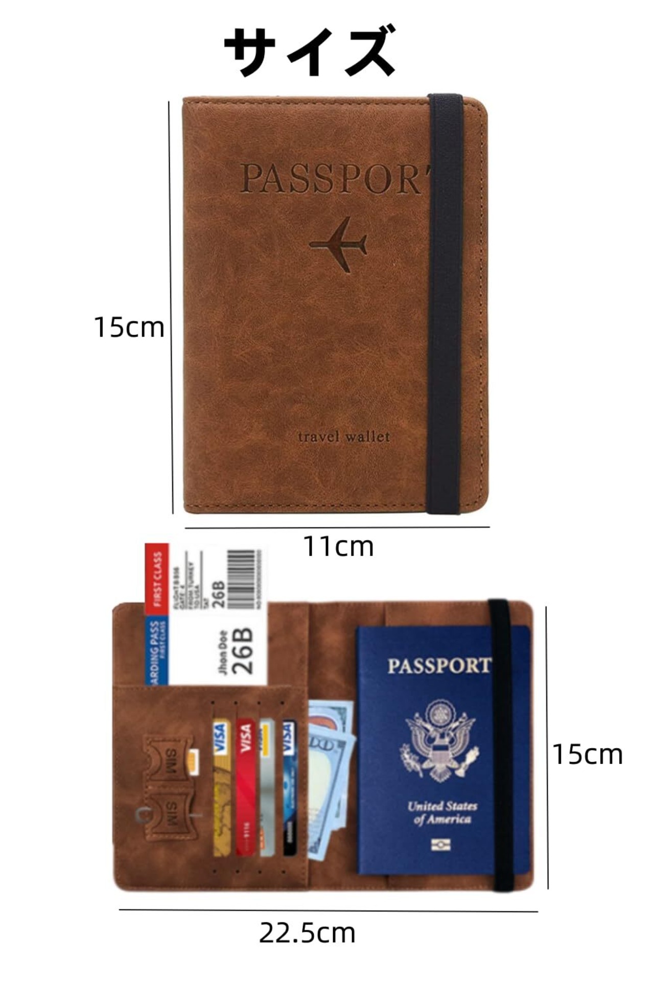 [YFFSFDC] パスポートケース スキミング防止 パスポートカバー ホルダー トラベルウォレット パスポートカードケース 多機能収納ポケット 国内海外旅行用品 海外出張 海外旅行(ブラウン)