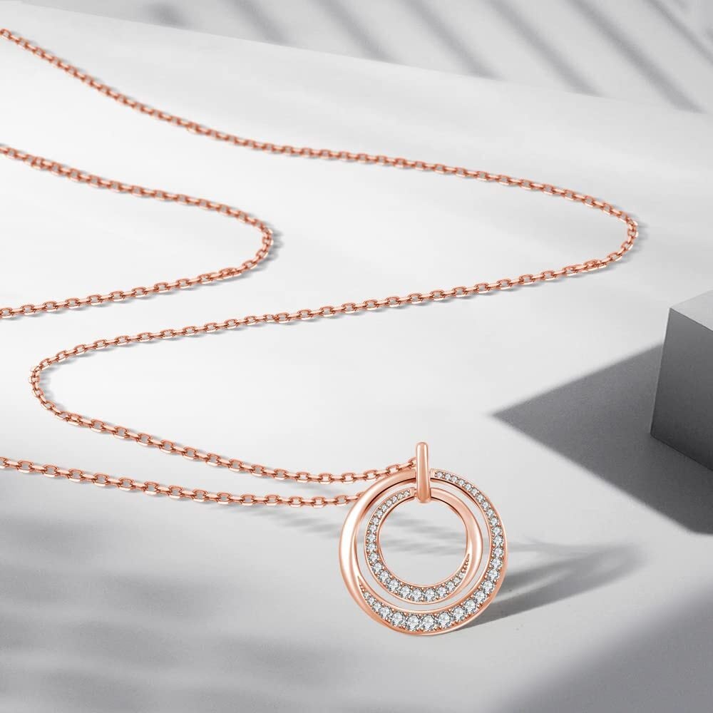 [Free bird] ロングネックレス レディース 3連サークル ネックレス ペンダント アクセサリー 60+5cm 誕生日 クリスマスプレゼント 女性 ジュエリー (ピンクゴールド 2連) | グランメゾンショップ