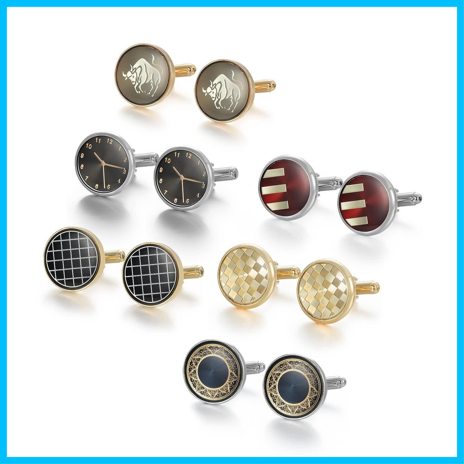 [wynameleri] 上品カフスボタン 6点セット メンズ 日常仕事 誕生日プレゼント 結婚式等 人気 おしゃれ ブランド カフリンクス 高級ケース付き