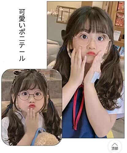 キッズ カール ポニーテール 可愛い ツインテール 子供用 ウィッグ エクステ つけ毛 髪飾り リボン付き お祭り イベント発表会 2点セット (ナチュラルブラック)