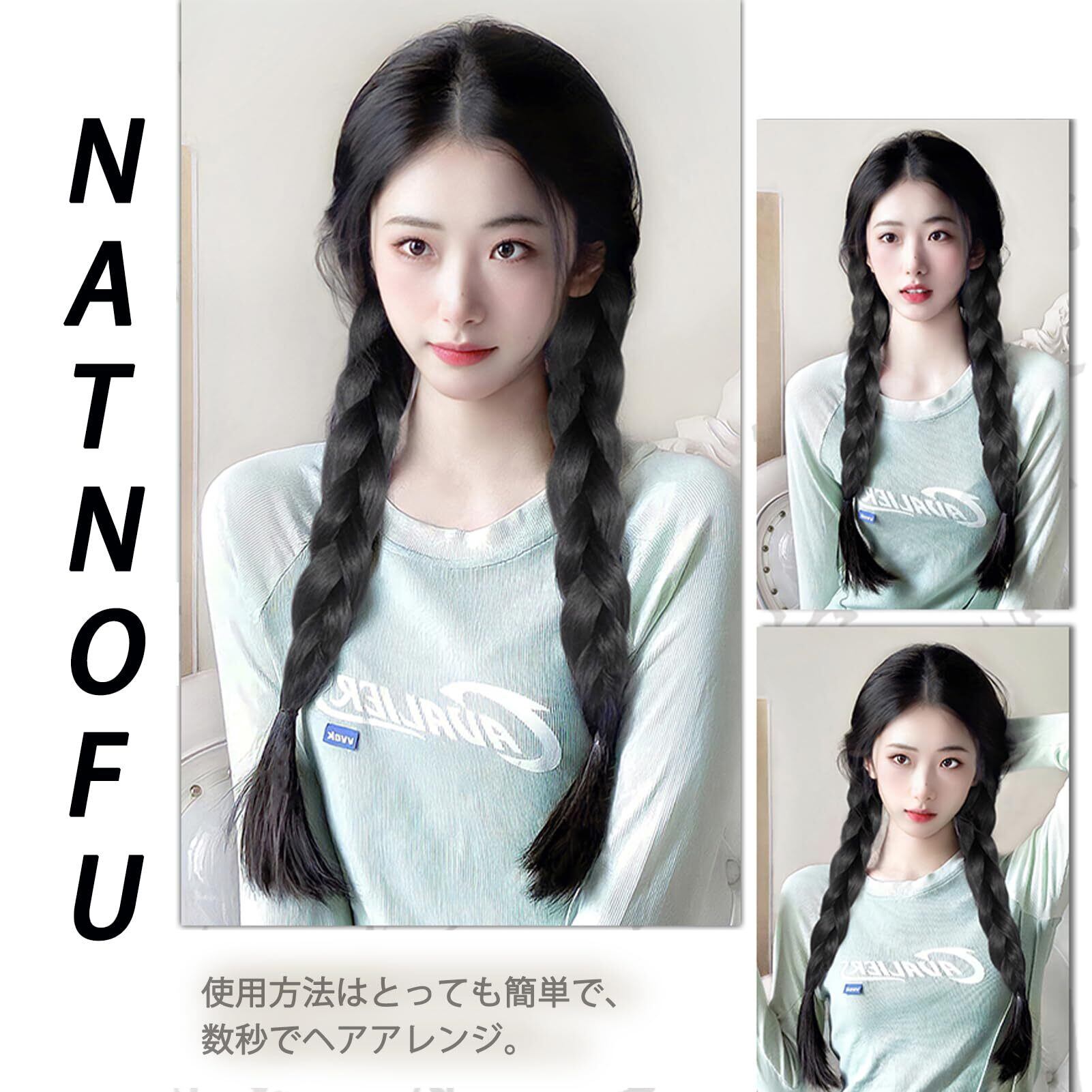 Natunofu ウィッグ ヘアエクステ 厚みが増し 編み込み 三つ編み 赤ちゃん エクステンション 2本セット ポニーテールリング ウィッグ ツインテール 三つ編み ウィッグ ダンス ヘアアクセサリー 付け毛 ポニーテール 毛束 ウィッグ つけ毛 ヘアアクササリー おしゃれ 人気 装着 簡単 自然感(ブラックブラウン) | グランメゾンショップ
