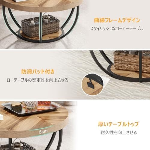 Tribesigns ローテーブル リビングテーブル 丸 サークルコーヒーテーブル 収納棚付き モダンおしゃれ 木製センターテーブル ソファサイドテーブル 木目調
