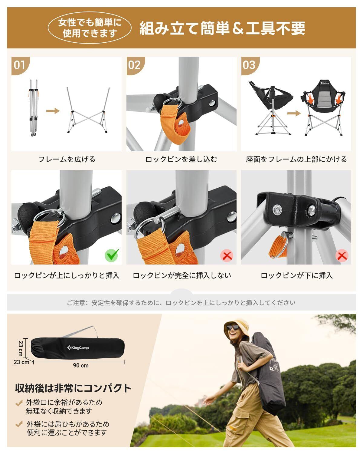 KingCamp ゆらゆらハンモックチェア アウトドア チェア 角度調整可能 座り心地最高 耐荷重205kg 組み立て簡単 自立式折り畳み椅子 アルミ合金製 収納袋付き 室内外兼用 | グランメゾンショップ