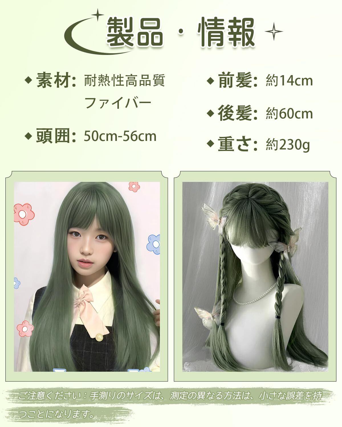 【ご注意ください】違う明るさあるいは違う液晶で見た場合に、同じウィッグでも若干の色の違いが生じることがあります。手作業で測っているので、わずかな誤差が生じる可能性があります。お好みの長さでカットすることができます。ご不明な点がございましたら、当店までご連絡ください。24時間以内にご返信させていただきます。