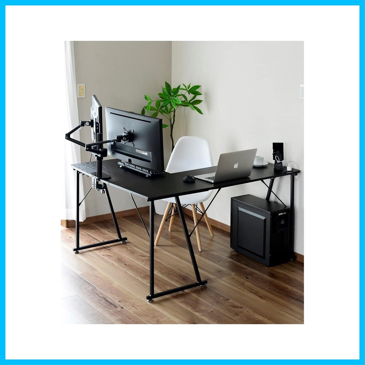 山善(YAMAZEN) デスク (L字デスク) 2口コンセント付き 耐荷重70kg 脚元ひろびろ pcデスク パソコンデスク 幅110×奥行130×高さ70cm 組立品 ブラック/シャイニーブラック PND-1300(BK/SBK) テレワーク | グランメゾンショップ