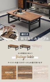 萩原(Hagihara) ローテーブル センターテーブル 折りたたみ式 棚付き テーブル 机 【木目調天板×スチール脚】 インダストリアル リビング ソファテーブル 幅90 ブラウン 頑丈 LT-4398BR | グランメゾンショップ