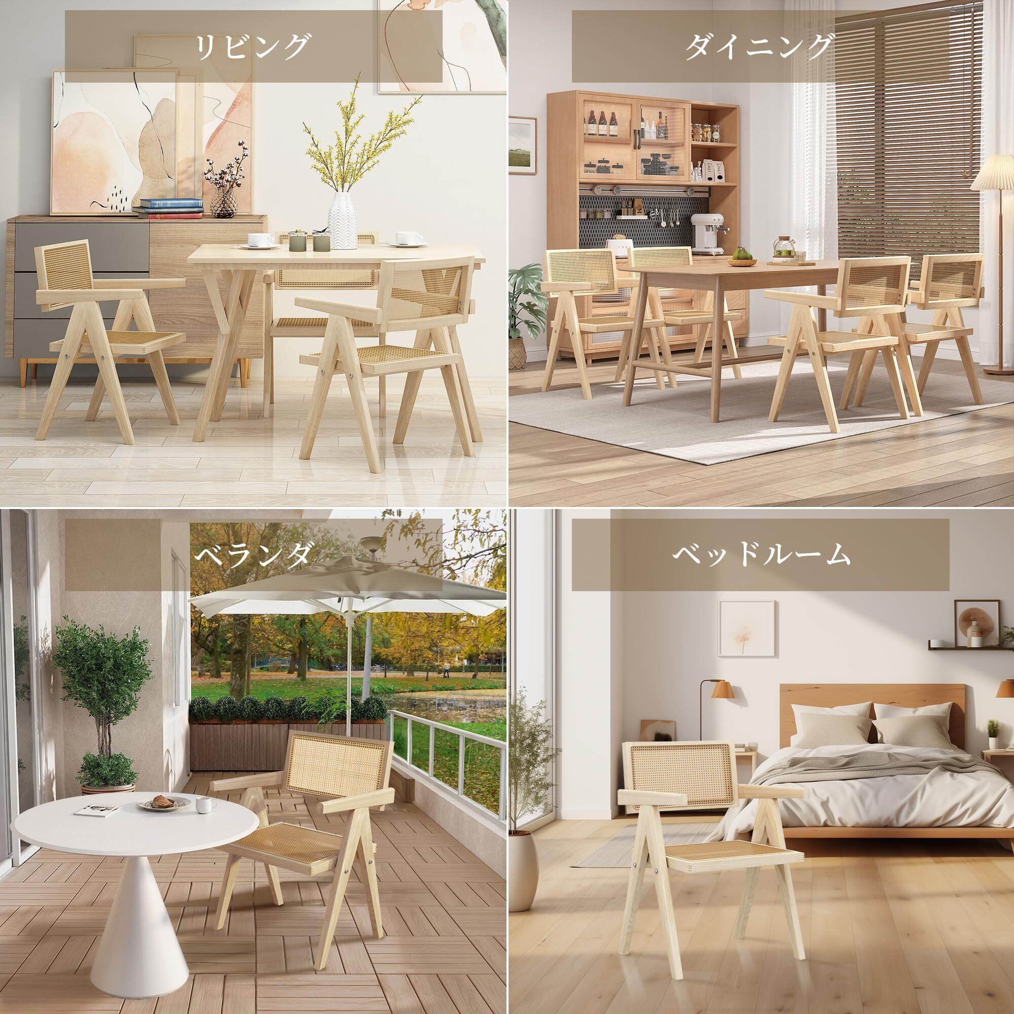 Tomile ラタンチェア 2脚セット ダイニングチェア アームチェア 椅子 木製 キッチン チェア 籐編み座面 食卓チェア 無垢材 オシャレ 肘掛け付 背もたれ付き ダイニング リビング カフェ 書斎 オフィス用 簡単組立 ナチュラル