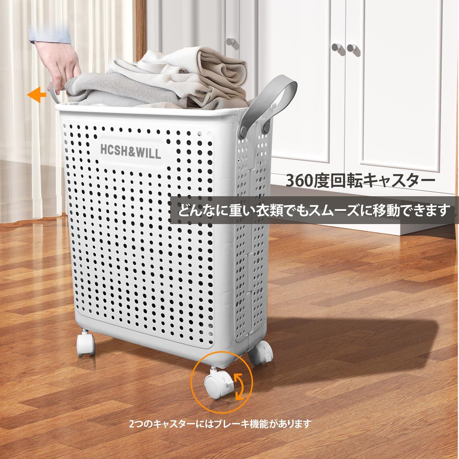 HCSH&WILL 洗濯かご ランドリー バスケット 折りたたみ 洗濯カゴ 洗濯籠 キャスター付き 大容量 取っ手付き 洗濯物入れ 幅37.7×奥行22×高さ45.4cm 白 38L(白-2個,38L-37.7*22*45.4cm) | グランメゾンショップ