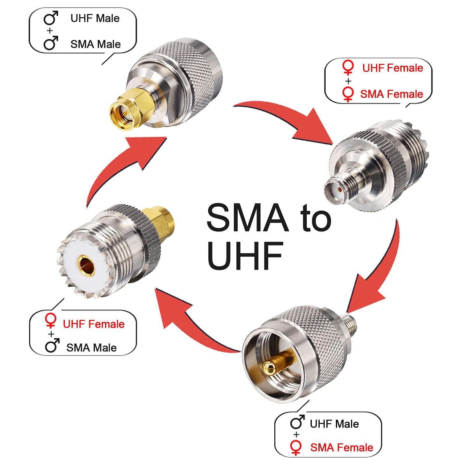 leeyovk SMA - M タイプ変換コネクタ(強化版) SMA オス M メス UHF/SO-293 MJ-SMAP 同軸アダプタ 金メッキおよびニッケルメッキ、VNA アンテナ アナライザ機器、アマチュア無線ハンドヘルド機器、VHF/UHF トランシーバー RF 同軸ケーブル コネクタに適しています
